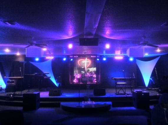 They used a lot of stretchy fabric, and plenty of LED’s to create the effect. The primarily used inexpensive fixtures since they have low ceilings.