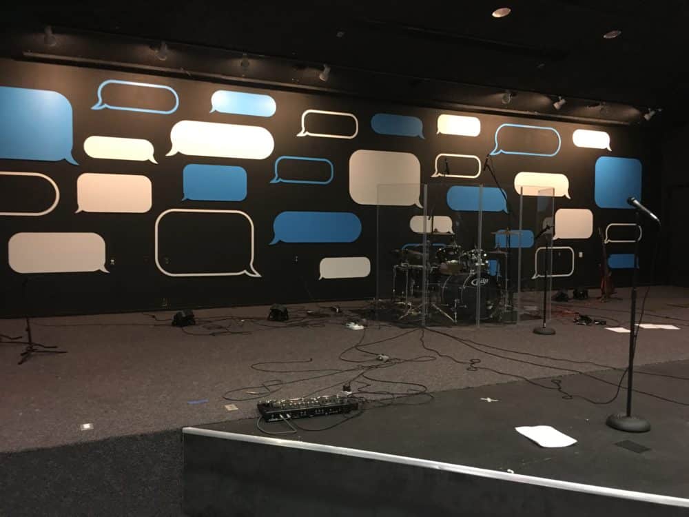 Dylan Casey from One Church Joplin in Joplin, MO brings us this speech bubble stage design.