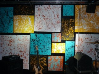 The concept is simple…different sized canvasses painted in different color combinations. Then add a little artistic splatter and you have your panels. To connect them he used eye hooks zip ties. Simple and artsy to boot.