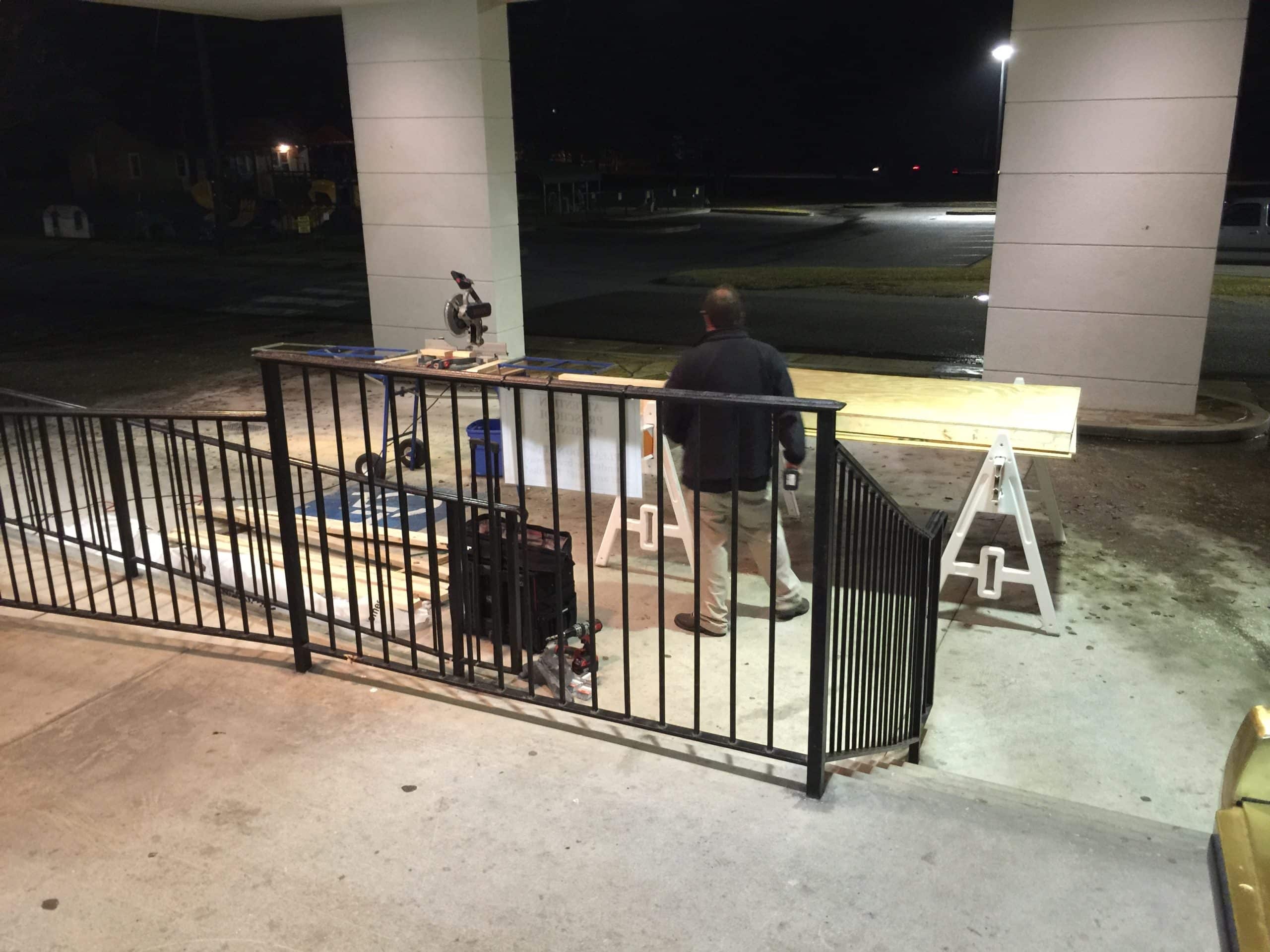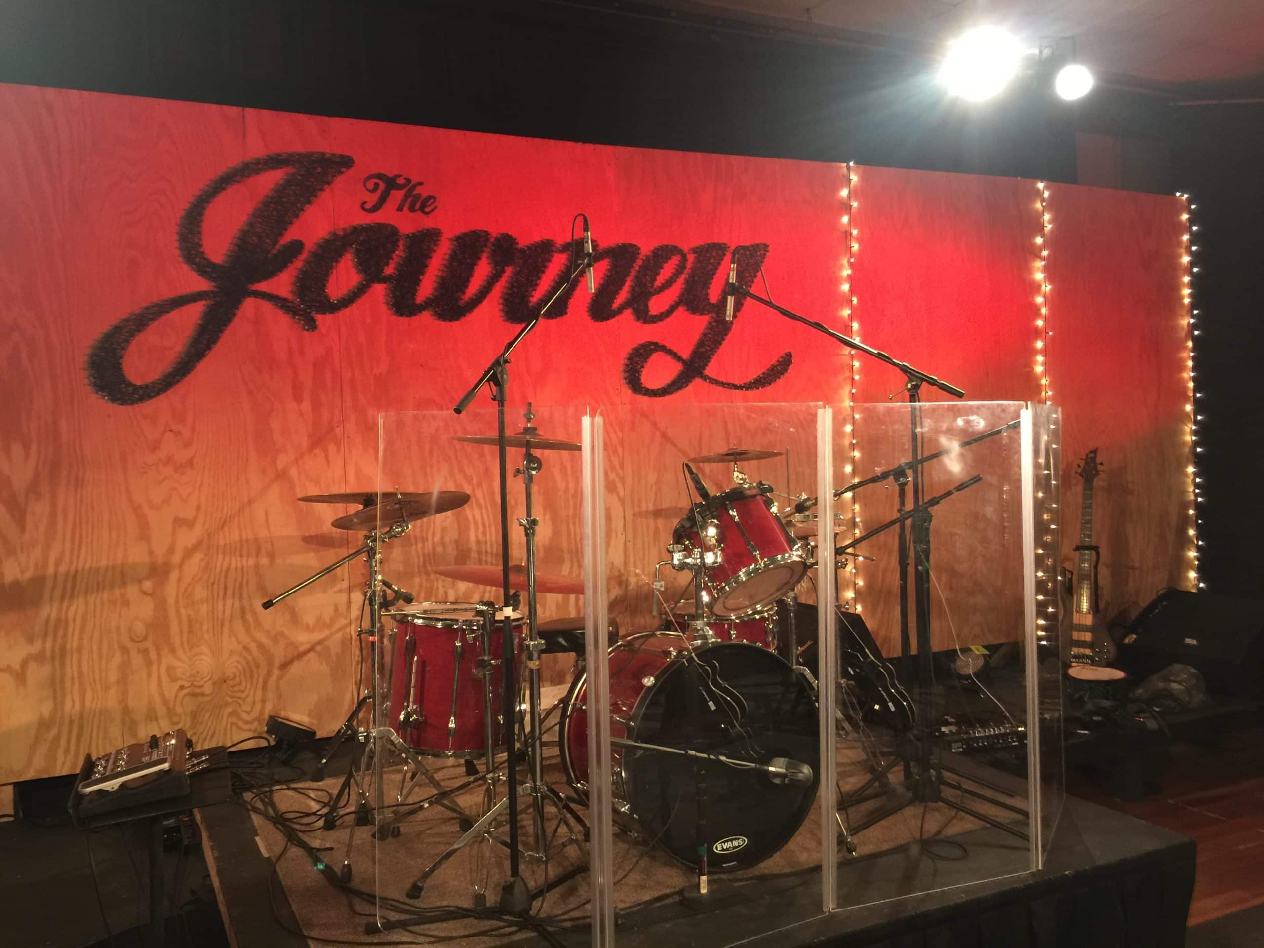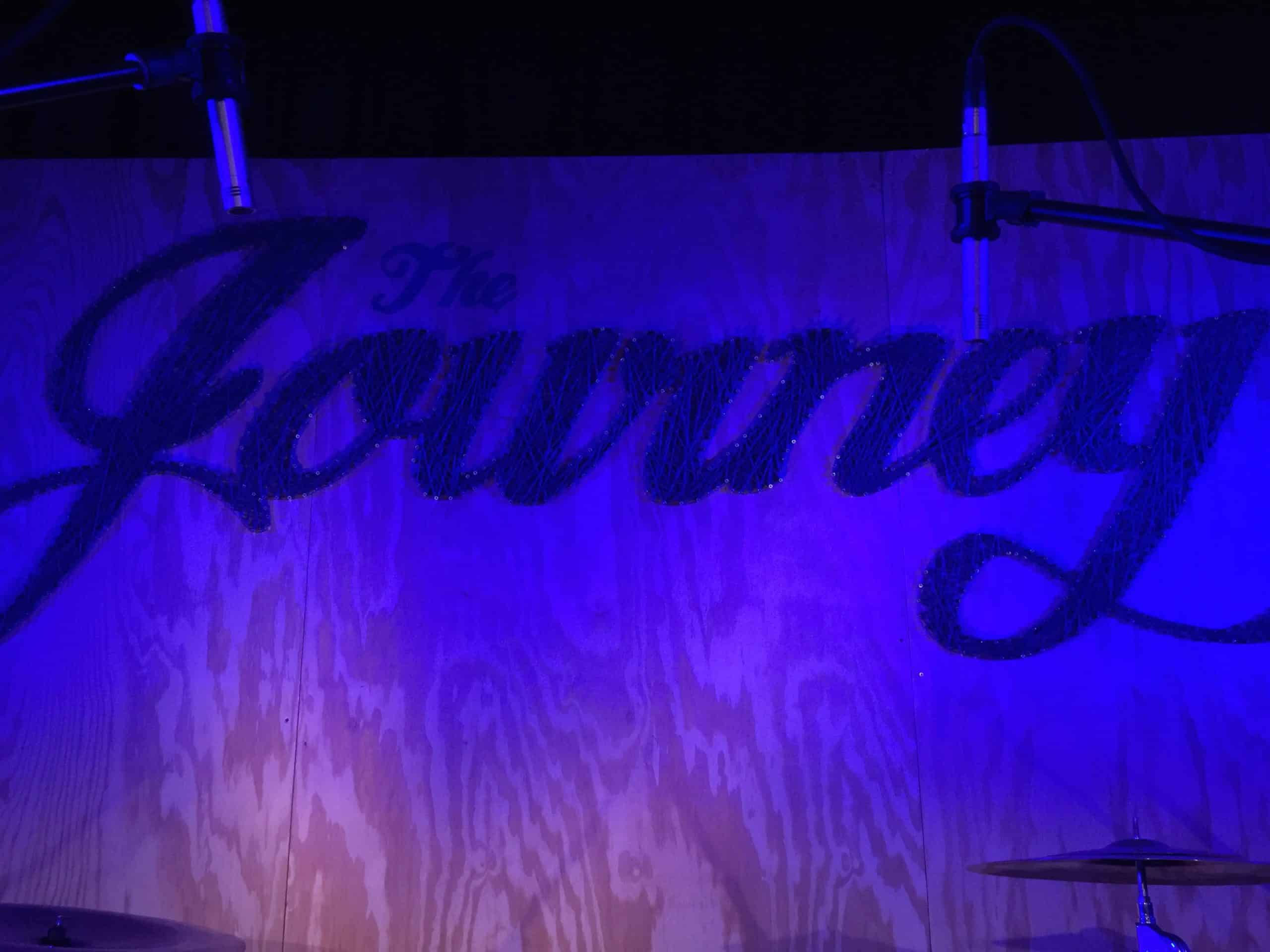 The logo was projected and traced onto the plywood panels and took 793 1-inch screws and a little over 500 yards of yarn to make. The yarn was woven within the logo somewhat randomly and was side-lit from extreme angles from the wings of the stage with Chauvet SlimPar lights to help bring some color to the logo and backdrop. The string was wound in several layers allowing the topmost layer to catch the light and create a cool effect and simulate more depth. Since they wouldn’t be flying any large set pieces, the panels that make up the backdrop were constructed in a way that would allow them to become additional staging platforms if needed for future series. They’ll likely paint them black after this Advent series.