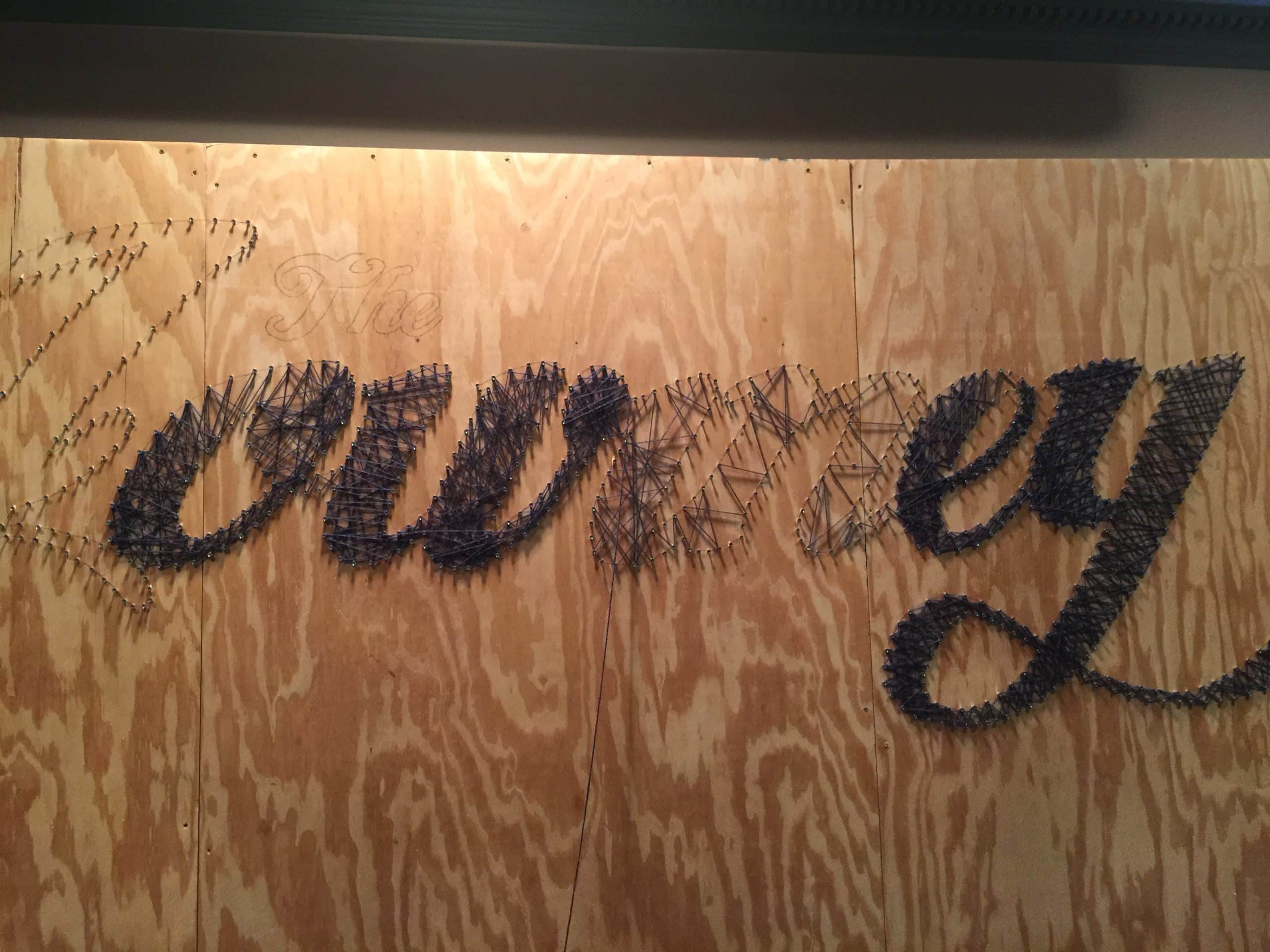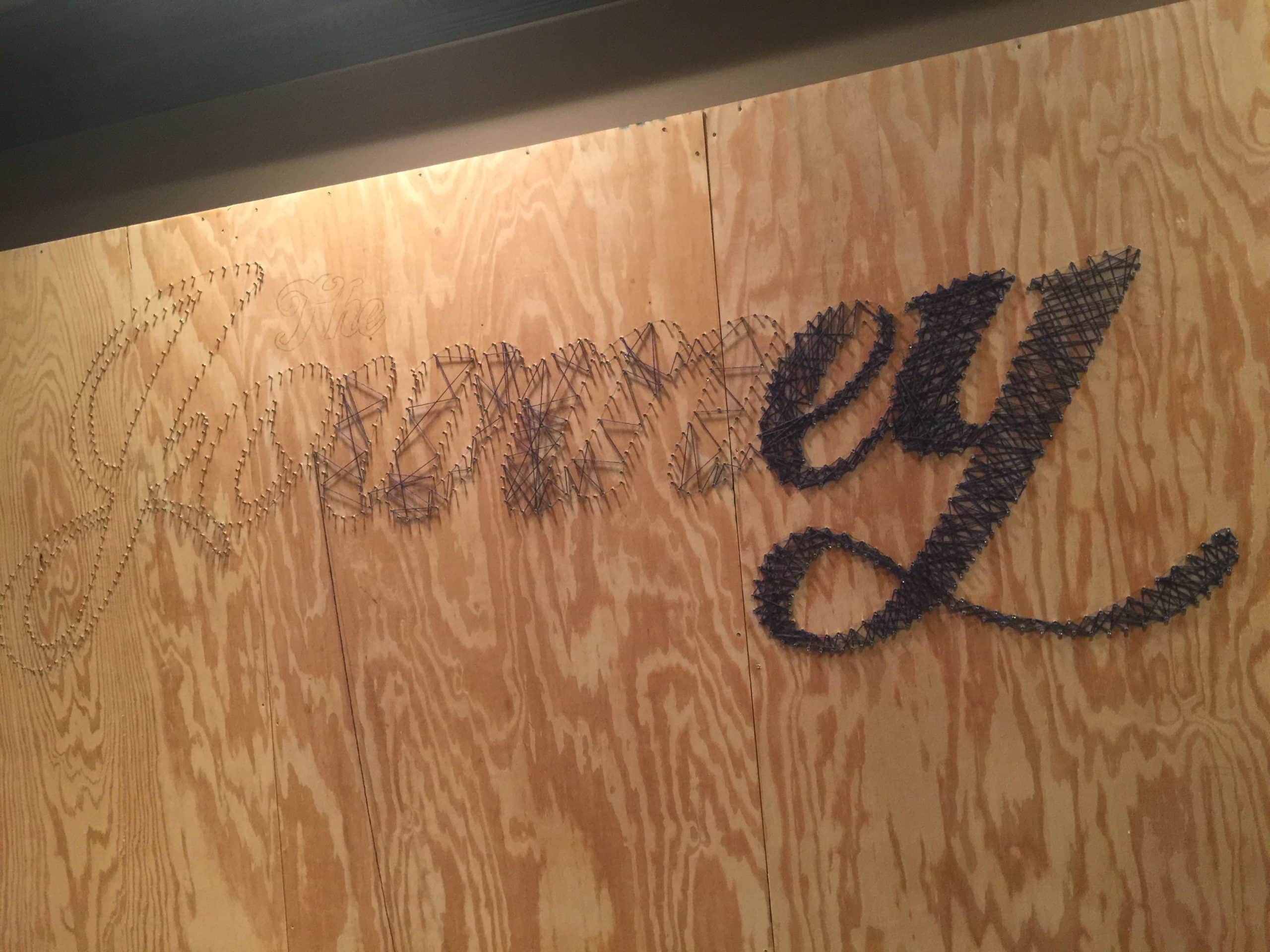This design was inspired by the string art installation design found on CSDI. They were going for a simple, understated feel, so they kept the wood un-painted. They normally use a lot of LED lighting in their services, but for this series, they more or less limited themselves to a “warm” look and a “cool” look—also trading out most of their LED lighting for tungsten fixtures.
