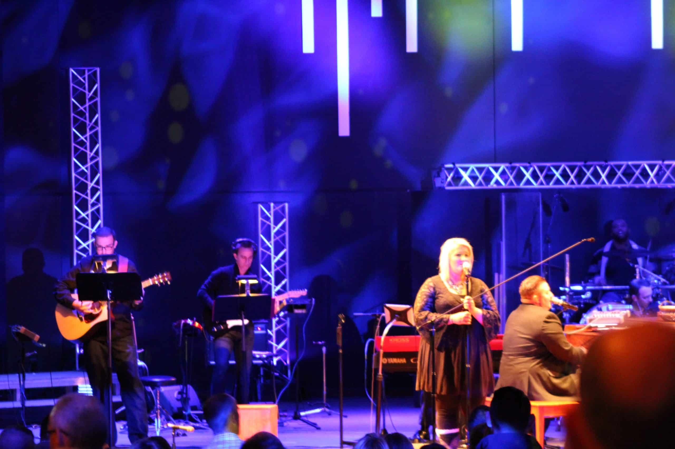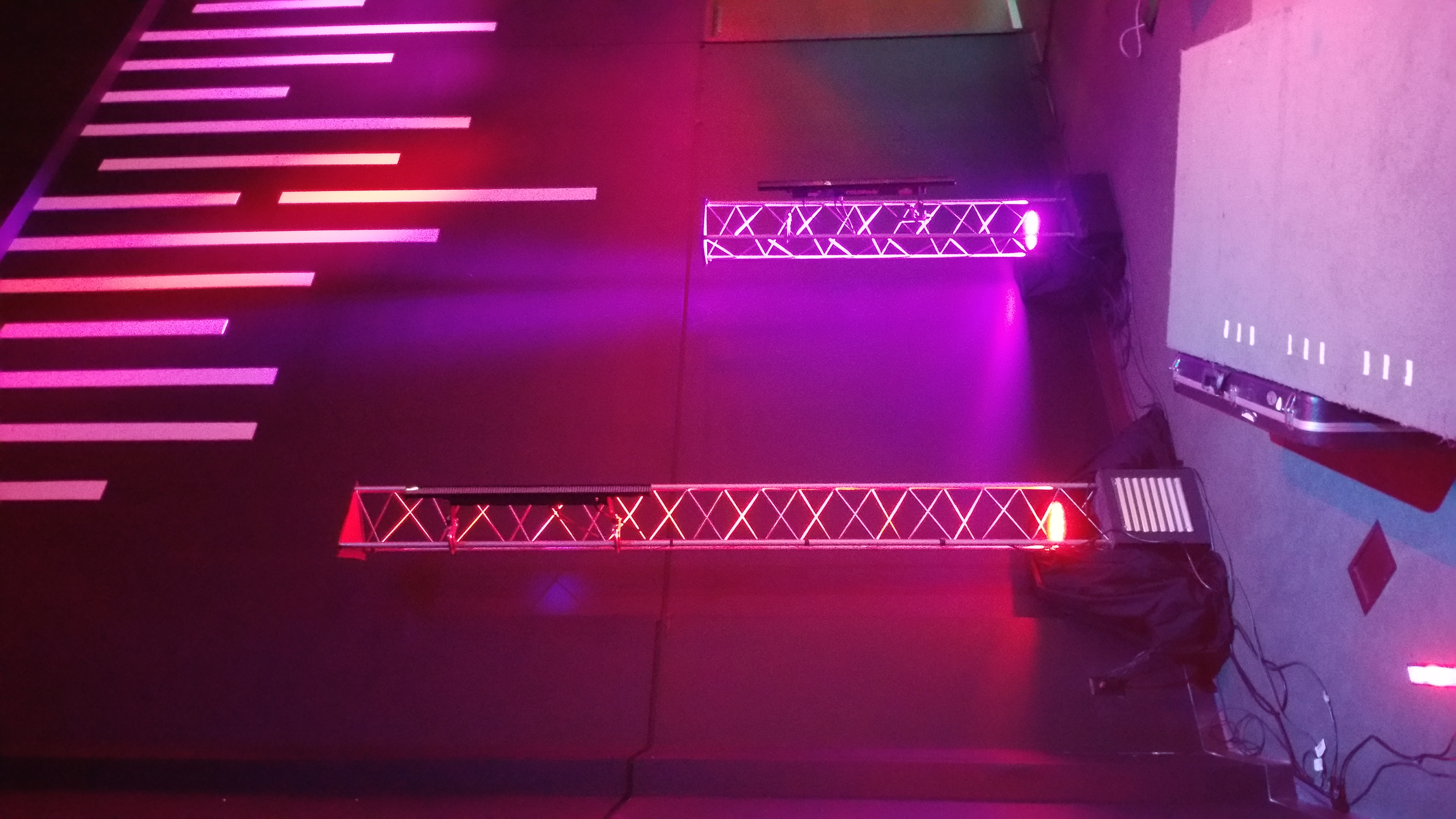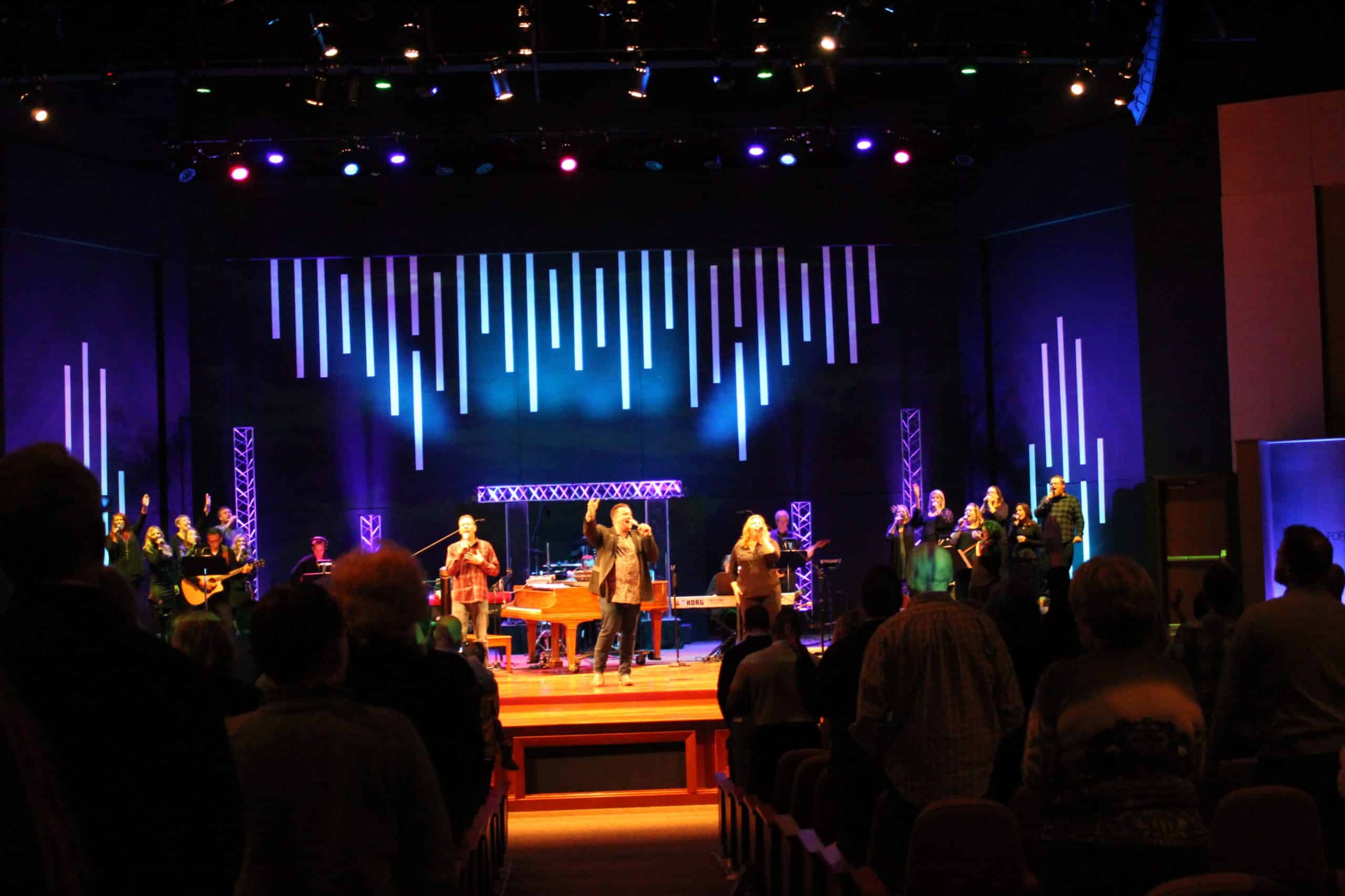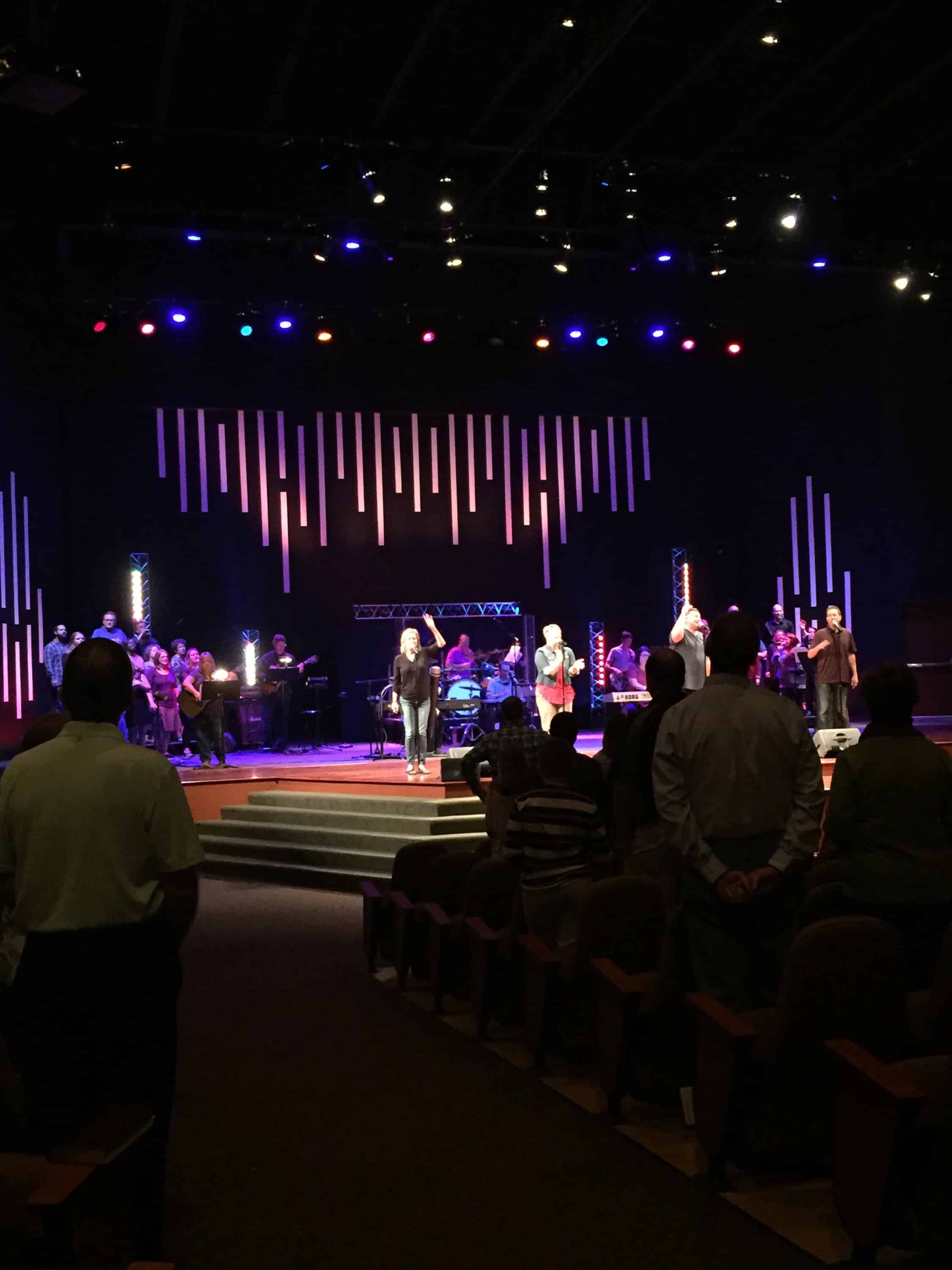 The trusses were from an old youth room stage. These just added modern feel and with Chauvet Colorstrips hanging on them added a fun blinder look. Everything came from past stages. So cost for us was $0.