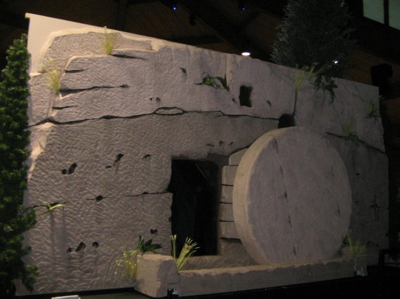 Wow, that’s a wonderful tomb with “stone” to be rolled away. Can you tell me more about how you made it? We’re trying to do a tomb scene with very little cash. It’s to be a backdrop for children’s pictures. They’ll be in costume. Thank you.