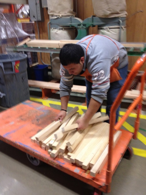 To create this set, they started by building six 2×2 boxes using 1/4″ plywood, nails, and a drill. Home Depot made the cuts for them (making it much easier). The wood plus the cuts cost $80.