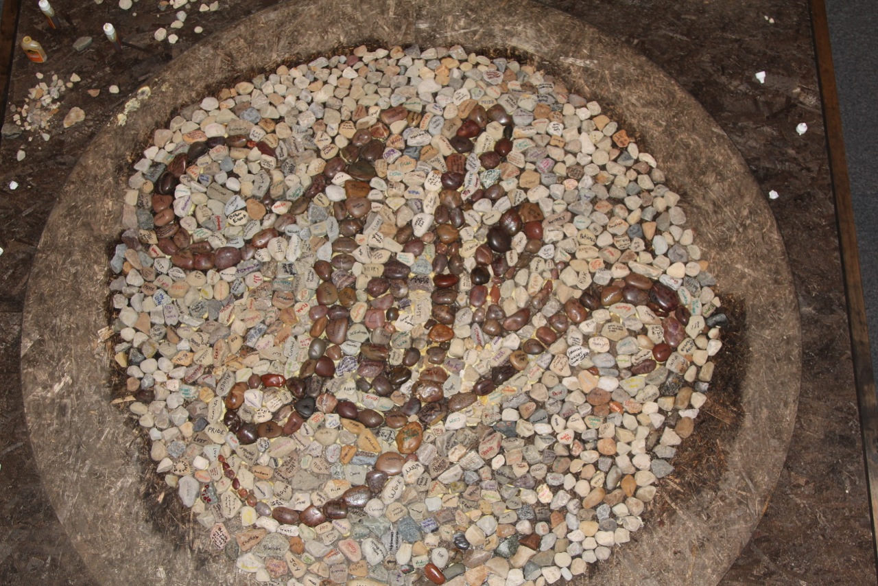 Shane Tucker from LifePoint Church in Columbus, OH brings us this stage sign made from tiny rocks.