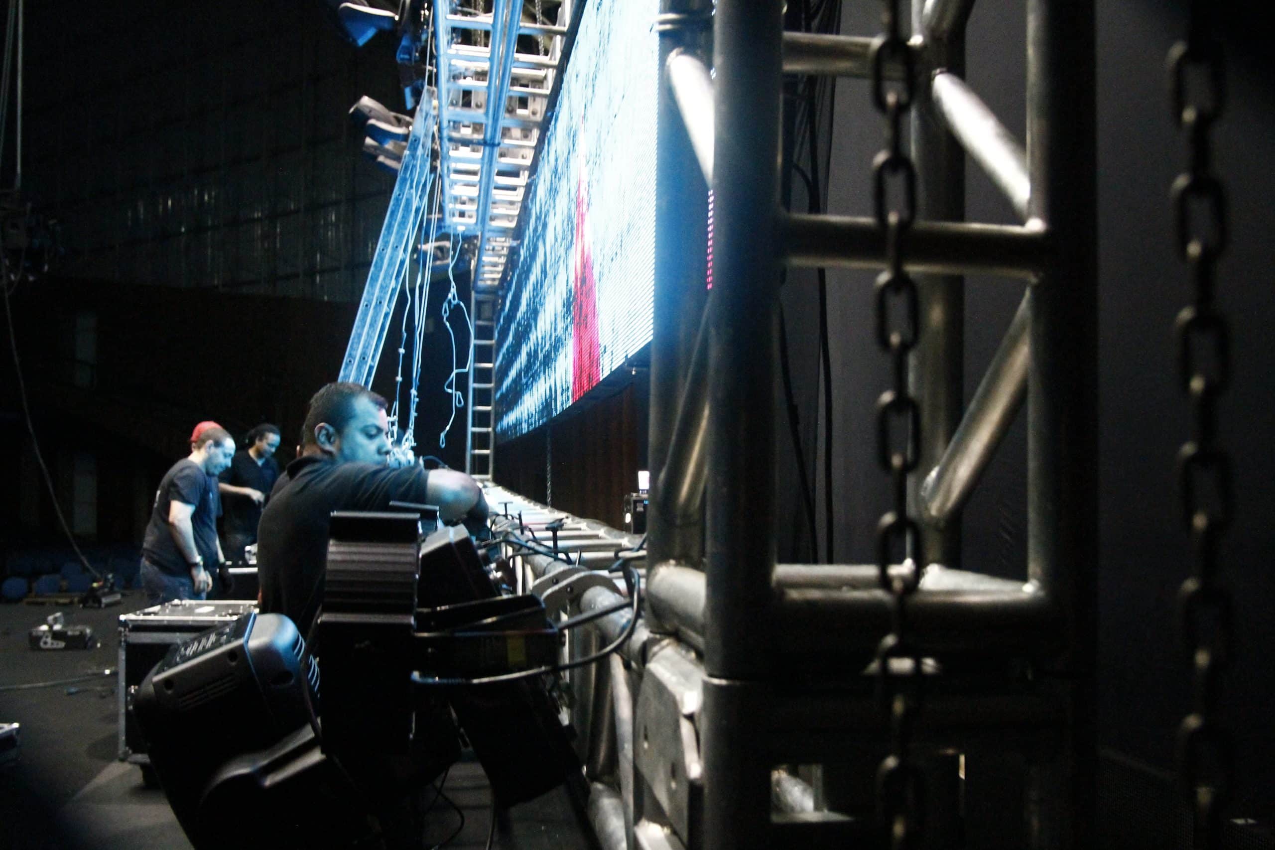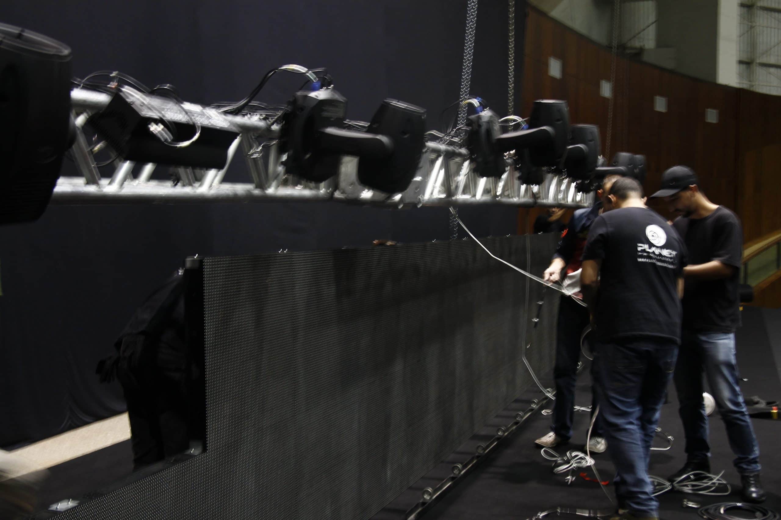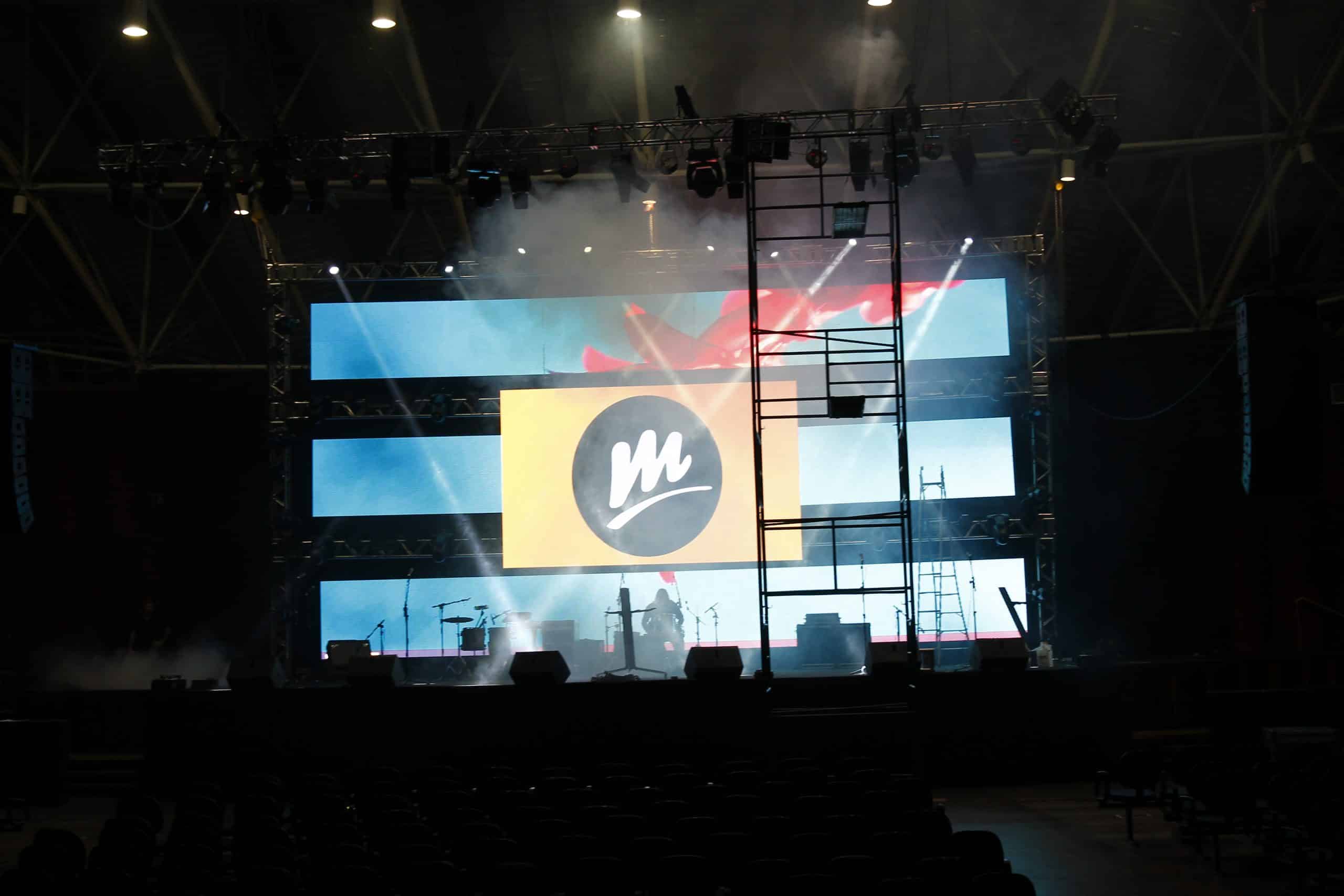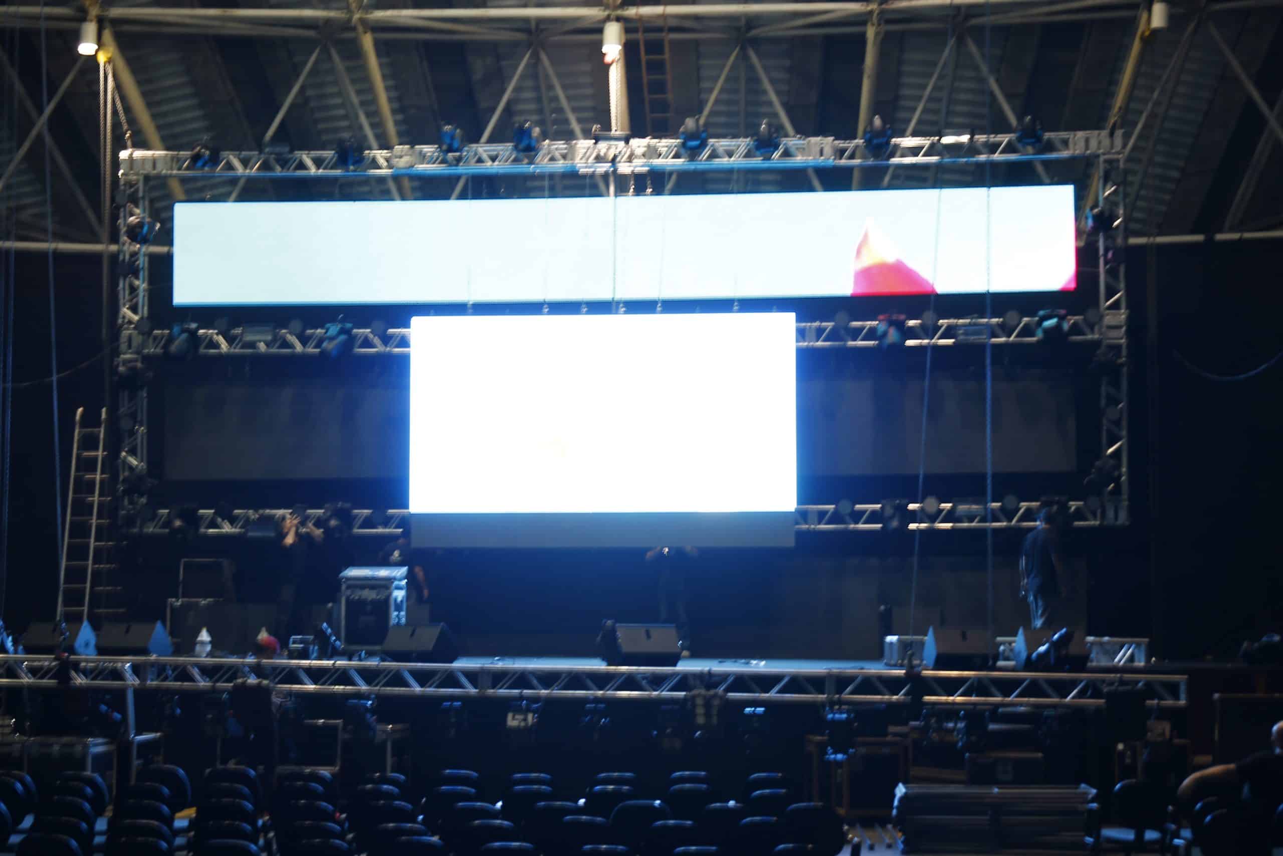 To make the stage they used 3 LED wide panels – P10 in the background for effects and moving backgrounds and one in the center in front P6 16: 9 main screen. Along with this, they used lights and boxtruss structure to hold everything.