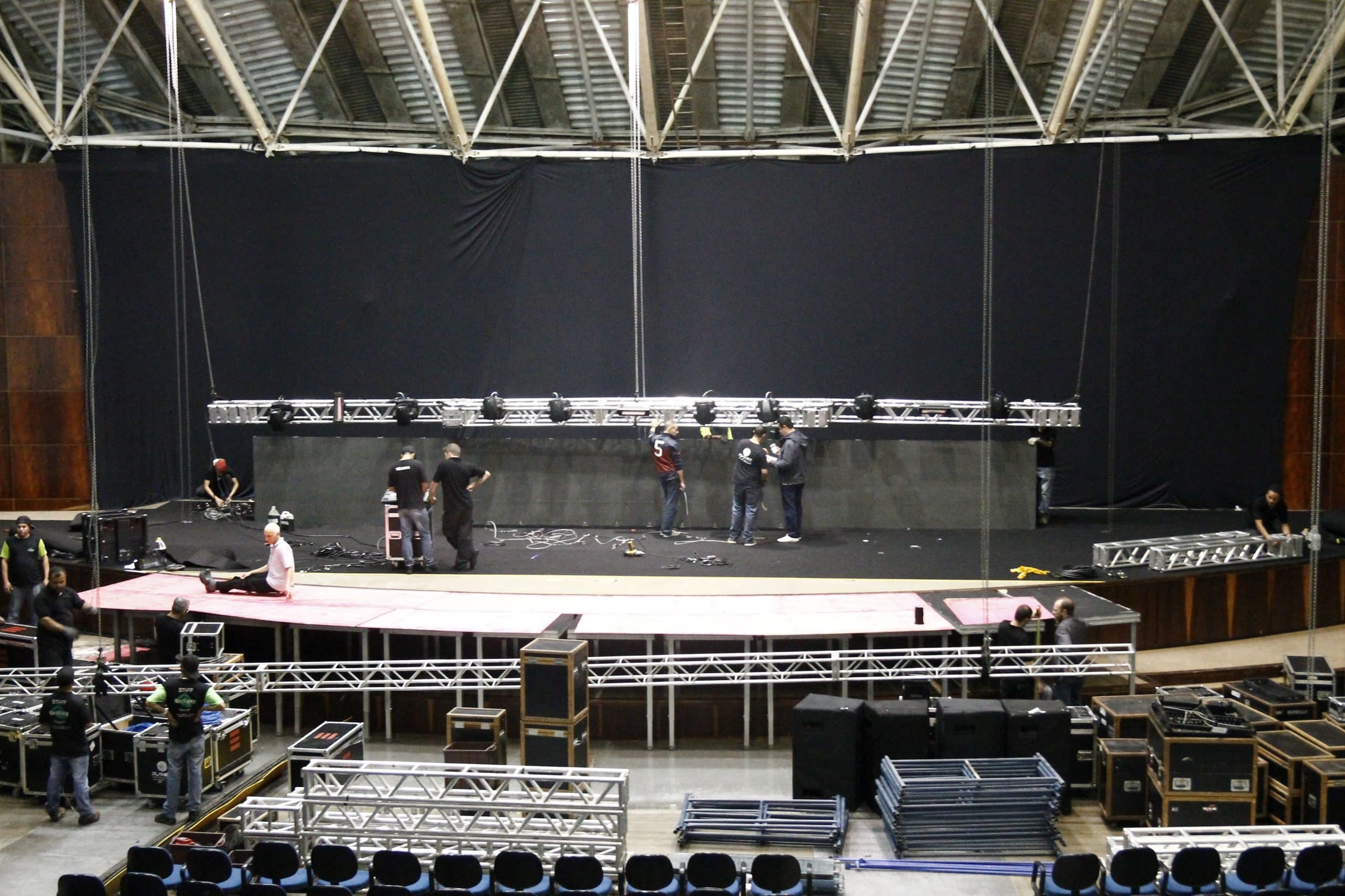 The stage was setup for two days and took approximately 15 hours and 15 people working to make it happen.