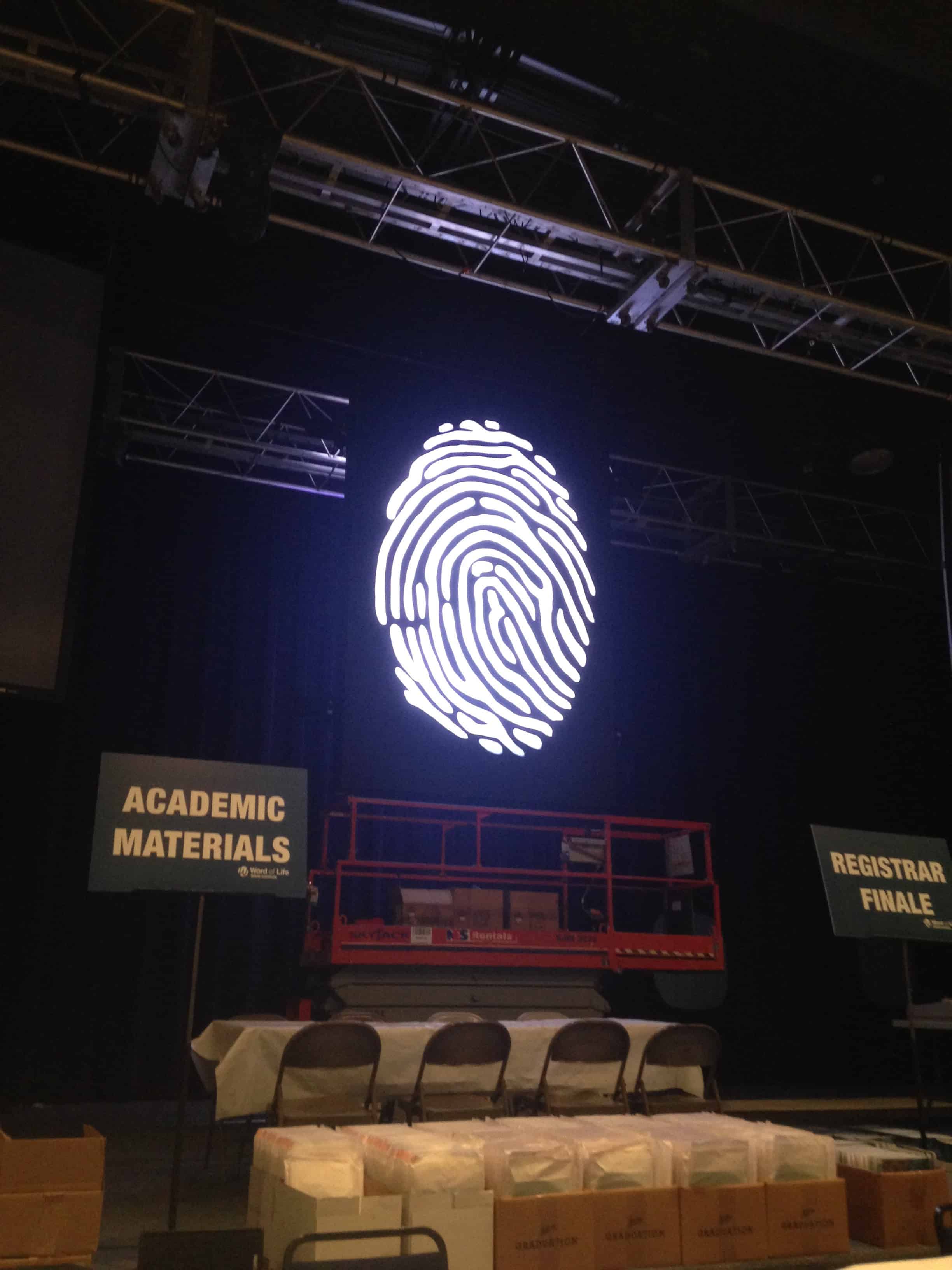 From Jeremy: Our theme for this year at our Bible Institute is “Identity”. We chose to go with a thumbprint as the main set piece to highlight the unique identity that God created each individual with…