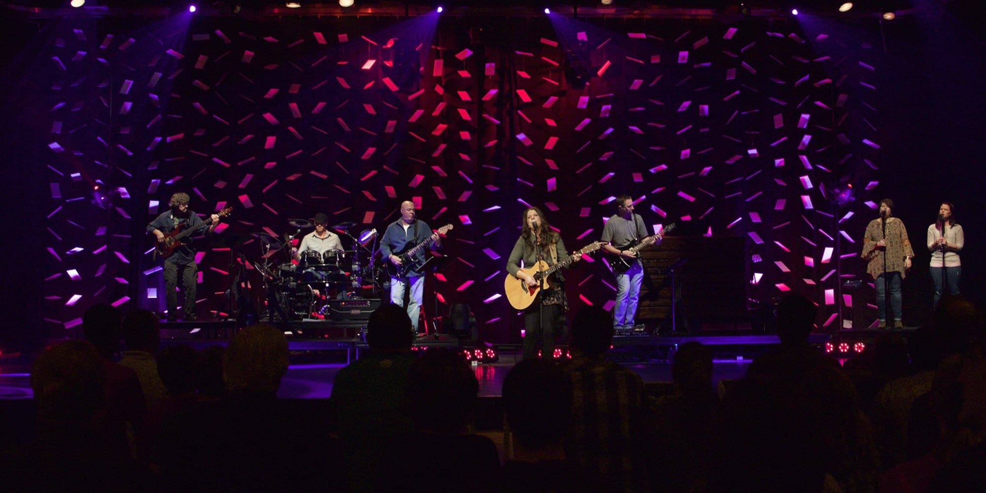 The only lights we had on the rectangles were from below. We had 12 Chauvet ColorPalettes lined up on the floor below the set. We didn’t have any lighting from above specifically meant for lighting the set but sometimes we did aim some of our movers from above to hit the rectangles. In the pic with the red & purple there are a couple Martin TW1’s lighting them from above. My favorite thing to do was to use our Mac 575’s to shine rotating gobos on the rectangles. It made them dance!