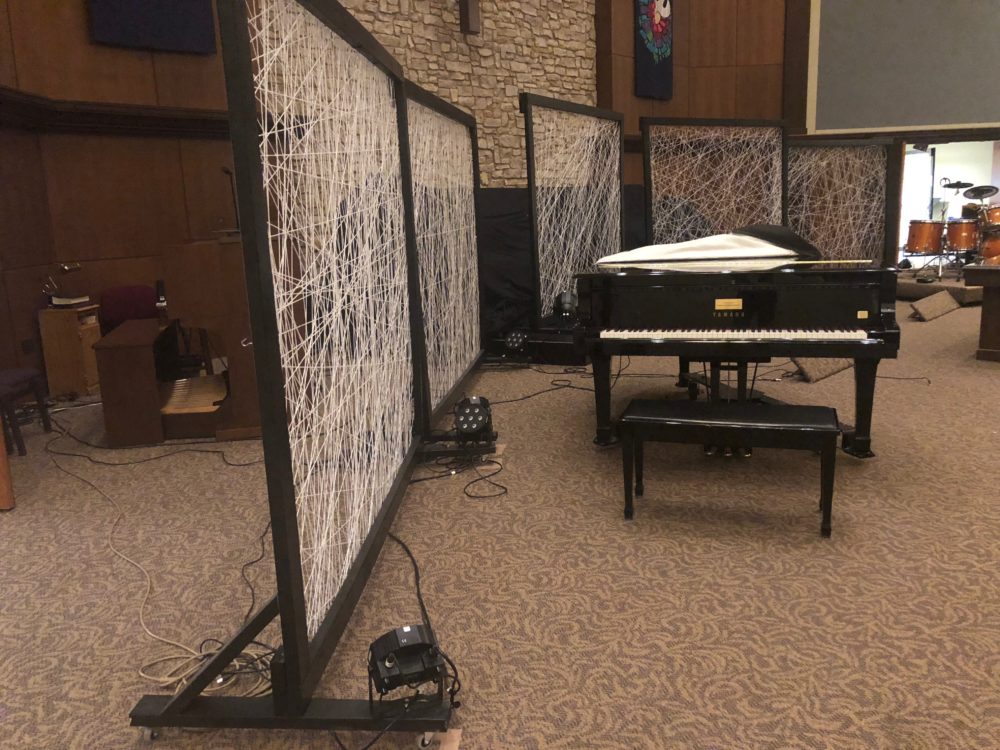 Our main goal was to pull focus away from all the extra items on the platform which we do not use for contemporary service. We found that the “string partitions” solved this issue by bringing a more central focus to the platform.