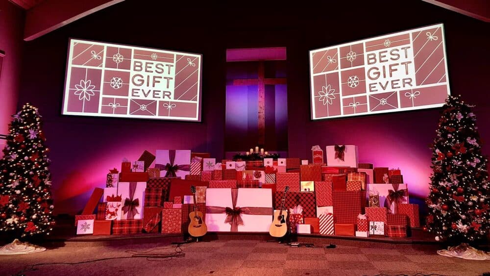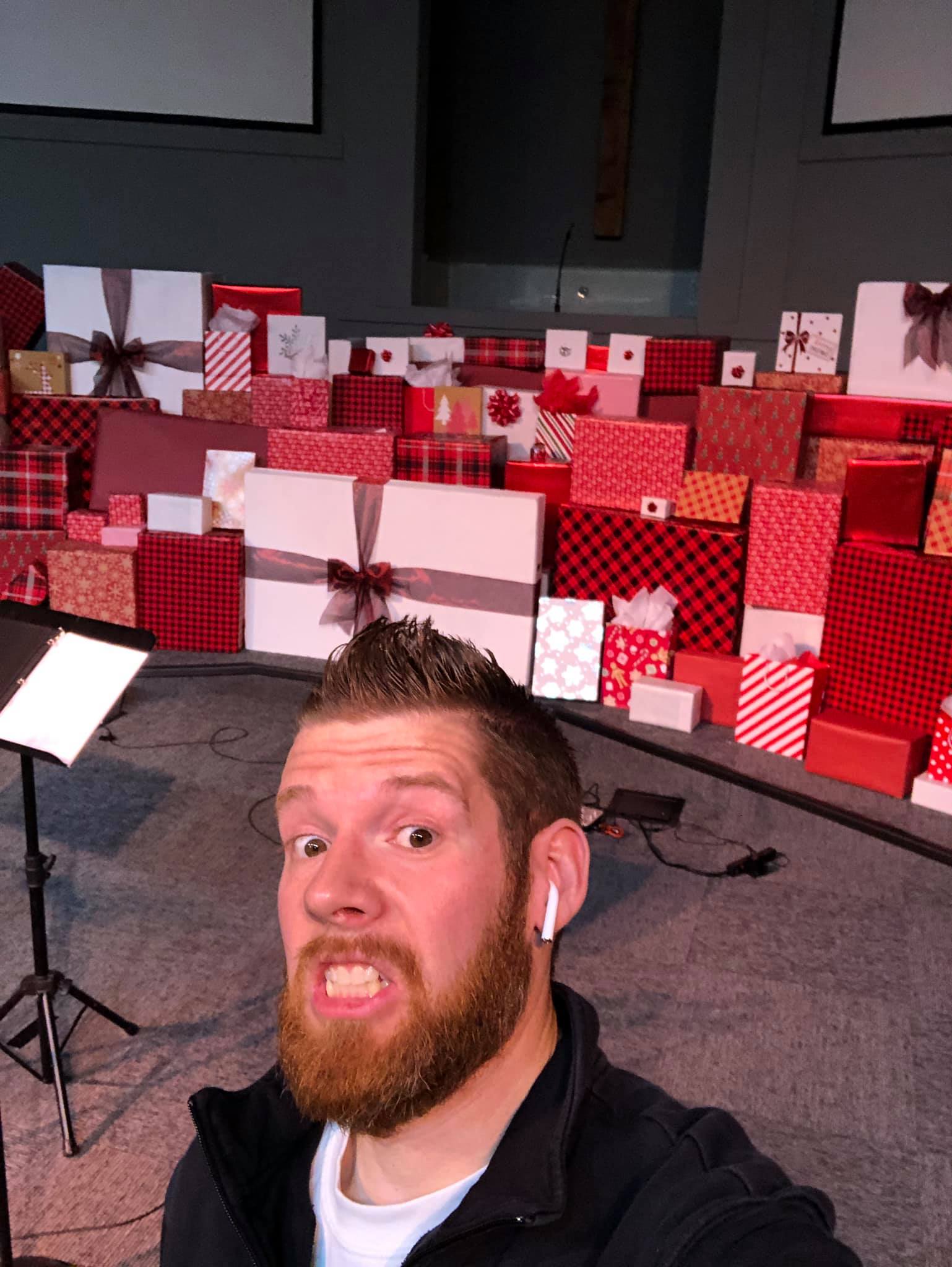 Tim Blake from Hickory Grove Baptist Church in Independence, KY brings us this crazy amount of wrapped presents.
